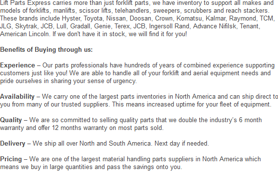 We have first-rate prices on all our lift-truck parts. Call now to get a price quote on one of the attachments or parts we offer. Call us at: